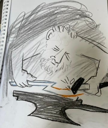 Sketching out Ideas for Vulcan, Sheena Mary Davies for Cradle of Fire 2024